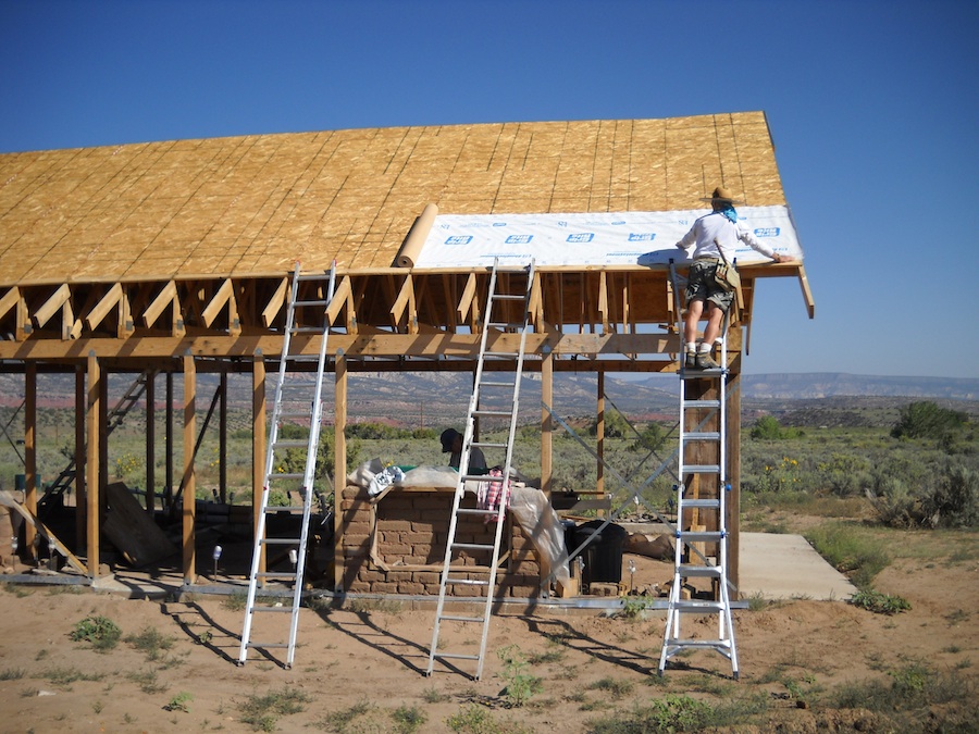 Our friend Dennis of "roof truss angel" fame returned to help us with this next phase - which is to get the underlayment up, flashing in place and metal roofing installed. Our friend Steve came back to help as well. We've spent the last four days doing the underlayment.